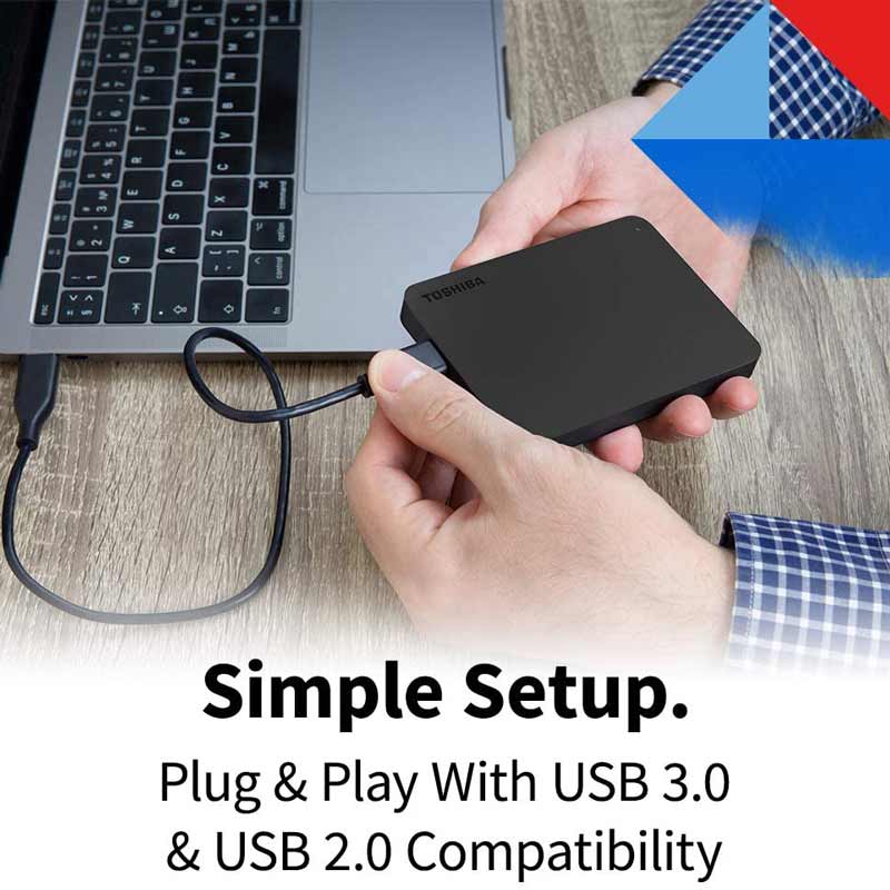 هارد اکسترنال توشیبا مدل Canvio Basics دارای طراحی صیقلی با ابعادی جمع و جور و قابل حمل در دست و کیف می باشد که با میزان ظرفیت ۲ ترابایت فضای مناسبی را برای ذخیره سازی فایل های مختلف نظیر ویدئوهای HD، تصاویر، اسناد و … فراهم می کند. این حافظه با سایز هد ۲٫۵ اینچی از متریال باکیفیت و مرغوبی در ساخت بهره برده که مقاومت کافی را در برابر آسیب های احتمالی در جهت حفاظت از داده های ذخیره شده خواهد داشت. Canvio از اتصال با سیم توسط رابط Micro B USB 3.2 Gen 1 به انواع لپ تاپ، سیستم های کامپیوتری و … پشتیبانی می کند و با سرعت ۵ گیگابیت بر ثانیه به صورت Drag and Drop انتقال سریع و ایمن فایل ها را تضمین خواهد کرد. قابلیت Plug And Play نیز برای این هارد در نظر گرفته شده تا بدون نیاز به نصب درایور و یا نرم افزار خاصی با دستگاه های هوشمند دارای سیستم عامل ویندوز، مک و …ارتباط برقرار نماید. انرژی حافظه اکسترنال Toshiba از طریق پورت USB تامین می شود و نشانگر LED نیز جهت اعلام وضعیت عملکرد بر روی بدنه محصول قرار دارد.