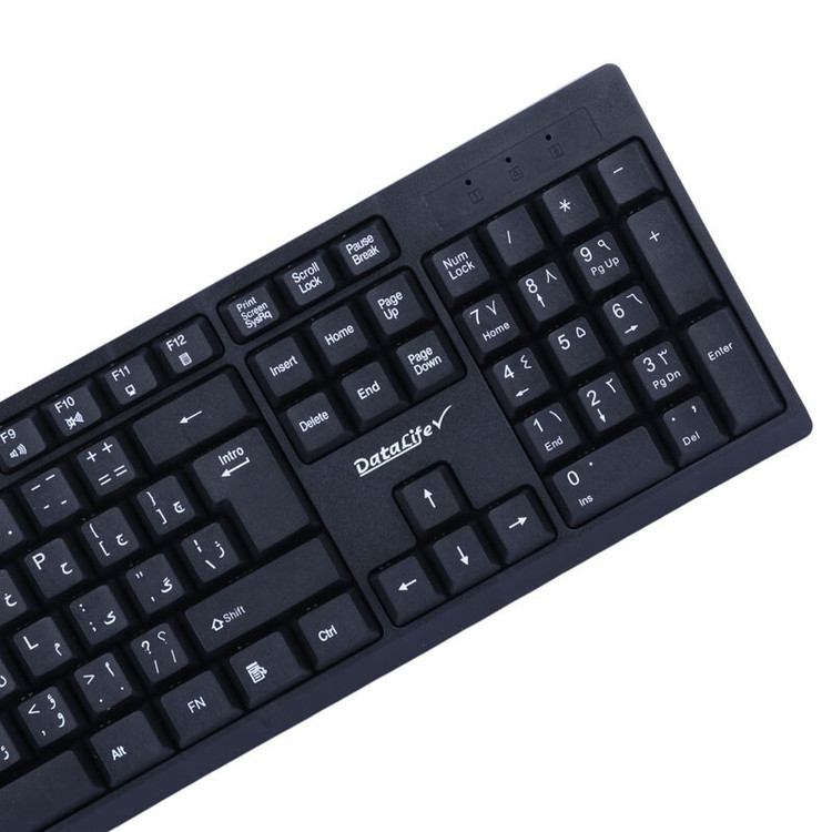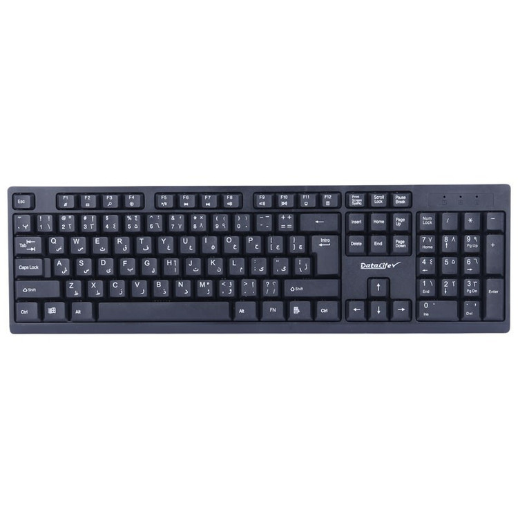 کیبورد مجهز به 104 عدد کلید فیزیکی با حروف حک شده فارسی شامل کلید های مولتی مدیا، کلید Fn و ...