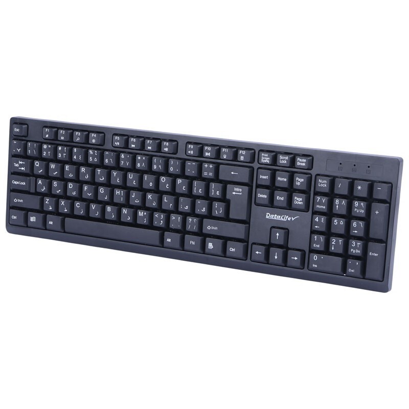 کیبورد مجهز به 104 عدد کلید فیزیکی با حروف حک شده فارسی شامل کلید های مولتی مدیا، کلید Fn و ...