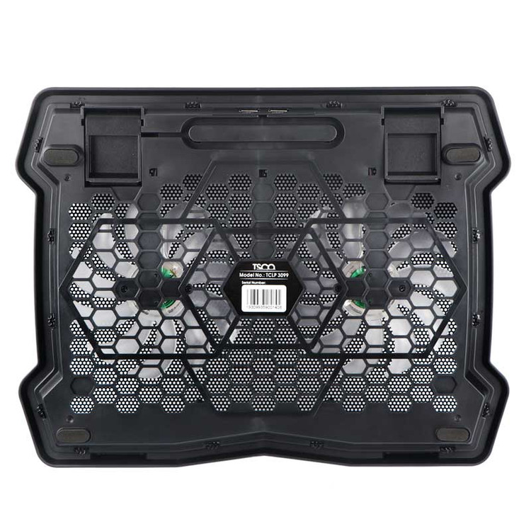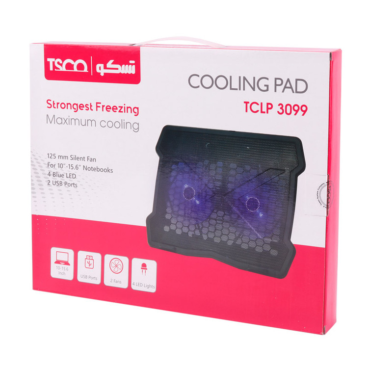 تسکو در خنک کننده TCLP-3099 از ۲ فن ۱۲۵ میلی متری بهره برده که قادرند سرعت چرخشی معادل ۱۰۰۰ دور در دقیقه را برای گردش هوا و پایین آوردن حرارت پاسخگویی کنند. بنابراین کاربران در هنگام فعالیت های سنگین و چند وظیفه ای شاهد خنک ماندن لپ تاپ و در نتیجه افزایش طول عمر آن خواهند بود. این محصول همچنین با قابلیت تنظیم ارتفاع به عنوان استند نیز مورد استفاده قرار می گیرد تا بهترین زاویه را برای راحتی بیشتر کاربران فراهم کند. در پنل زیرین خنک کننده لپ تاپ TSCO TCLP 3099 دو درگاه USB تعبیه شده تا این محصول نقش یک هاب دو پورتی یو اس بی را نیز ایفا نماید. این ۲ درگاه قادر به پذیرش فلش مموری، موس، کیبورد و .... خواهند بود تا کاربران آزادی عمل بیشتری را در هنگام استفاده تجربه کنند. این پایه خنک کننده انرژی مورد نیاز خود را نیز از طریق کابل USB دریافت خواهد کرد تا به راحتی و در هر مکانی قابل استفاده باشد و چهار چراغ LED نیز بر روی آن قرار داد که بر زیبایی آن به خصوص در محیط های تاریک افزوده است.