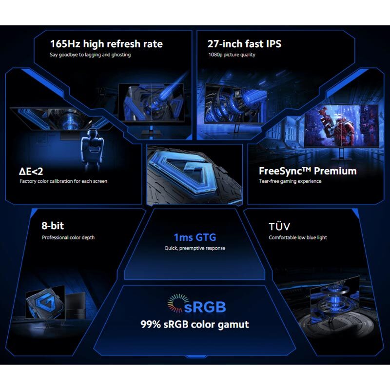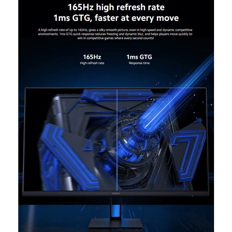 دارای نرخ تازه سازی 165 هرتز، مناسب برای حرکت روان تصاویر و تجربه گیمینگ سریع، با زمان پاسخ گویی 1 میلی ثانیه برای کاهش تاری حرکت و تصویری روان در بازی ها